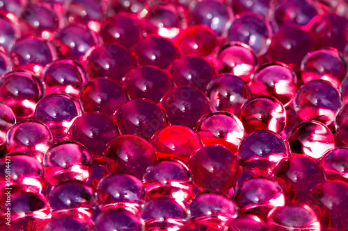 Red shiny water gel balls. Macro photo, can be used both for advertising or cosmetics, jewellery and for medicine. Abstract background.