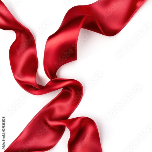 Red silk ribbon swirls on white background
