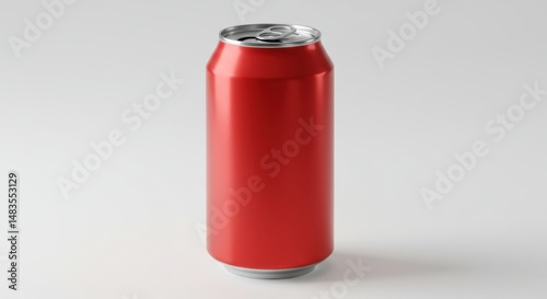 soda, can, red, aluminium, pull tab, unmarked, studio, white, background, surface, drink, beverage, refreshment, cold, metallic, cylindrical, simple, clean, isolated, product, photo, object, still life, container, carbonated, fizzy, upright, standing