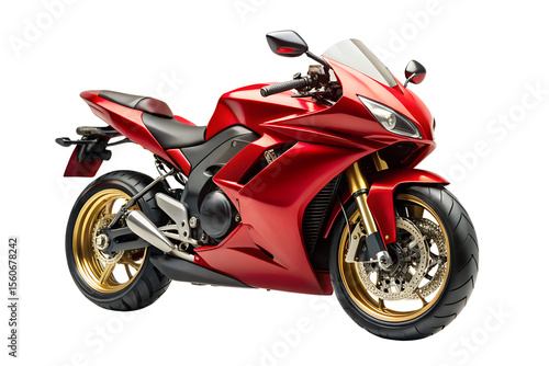 Red sport motorcycle isolated on white background, a fast vehicle for biker transport
