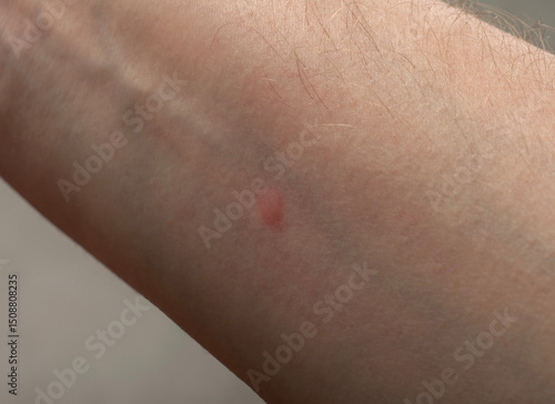 red spot on the hand from a mosquito bite