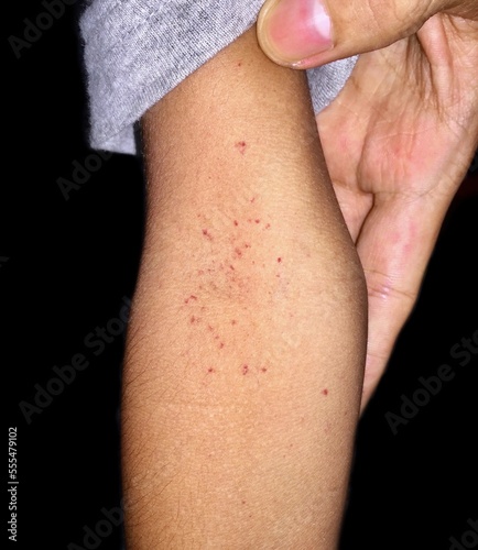 test, tourniquet, dengue, rash, spot, red, spot, fever, hemorrhage, blood, bruise, small, positive, children, children, pediatric, arm, forearm, elbow, grade, 2, isolated, symptom, symptom, signs, signs, patient, limb, thin, group, many, blood-red, colours, colours, little, bruise