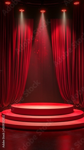 stage, red, curtain, spotlight, light, theatre, performance, presentation, background, display, platform, dais, pedestal, award, ceremony, show, event, dramatic, elegant, luxury, grand, majestic, scene, setting, design, abstract, dark, moody, romantic, passion, energy, power, sharpened