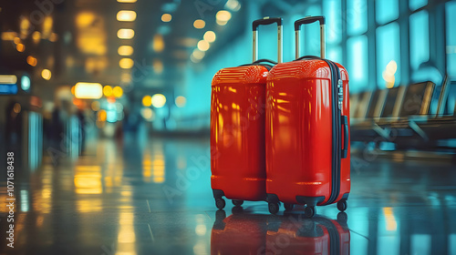 Red Suitcases in Airport Terminal - Realistic Image