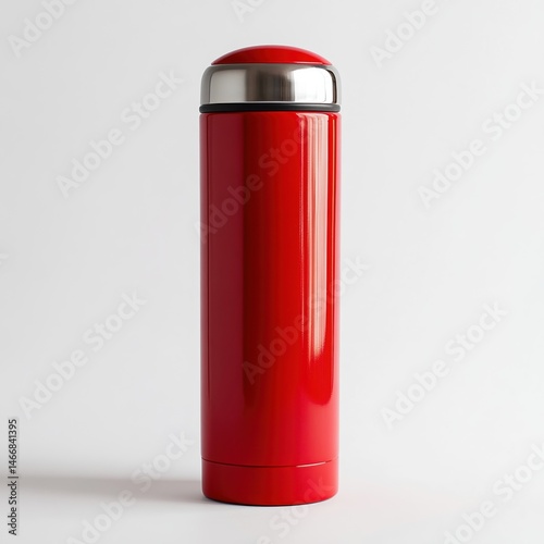 thermos, red, bottle, silver, lid, metal, drink, container, insulated, shiny, cup, steel, vessel, cap, portable, round, glossy, kitchen, object, studio, equipment, product, closeup, tableware, cylinder, flask, vacuum, beverage, still, white, background