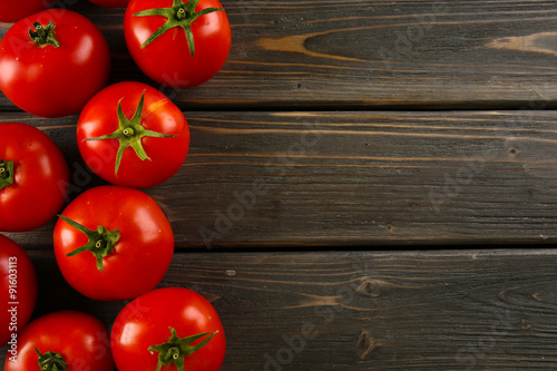 Red tomatoes on wooden background