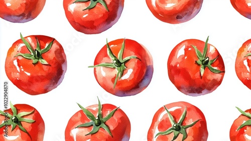 tomatoes, red, pattern, watercolor, design, vegetable, food, fresh, organic, healthy, nature, agriculture, harvest, ripe, garden, cooking, culinary, background, texture, artistic, illustration, vibrant, colourful, produce, summer, natural, vegetarian, diet, nourishment, epicure, cookery, farm, market, seasonal, juicy, green, leaf, botanical