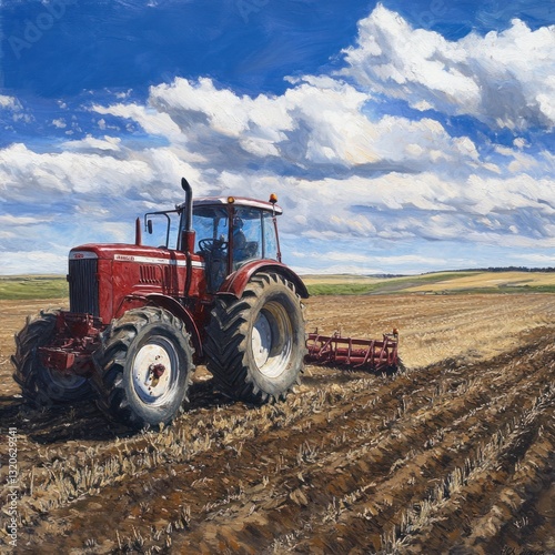 nature, farm, agriculture, field, sky, outdoors, organic, growth, crop, farmer, sunlight, industry, rural, animal, green, landscape, plant, summer, farmland, horizontal, land, meadow, photo, cow, tractor, farming, machinery, machine, agricultural, equipment, red, grass, plough, old, vehicle, countryside, blue, work, harvest