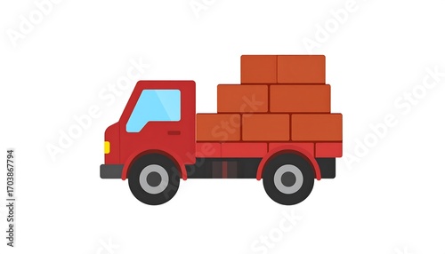 truck, red, brick, construction, delivery, transportation, stacked, load, material, cargo, vehicle, flatbed, building, supply, transport, icon, simple, illustration, flat, design, graphic, delivery truck
