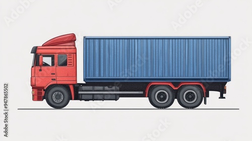 truck, vehicle, transportation, cargo, container, shipping, delivery, logistic, freight, semi, trailer, heavy, duty, commercial, automobile, road, transport, haul, load, drive, wheel, tire, cab, engine, chassis, box, metal, blue, red, white, grey, illustration, design, vector, artwork, style, image, graphic