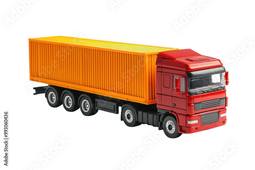 Red truck with orange container, white background transparent background