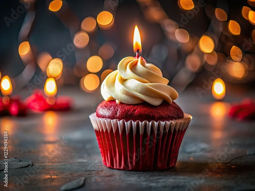 Red Velvet Cupcake with Candle Silhouette Photography - AI Art