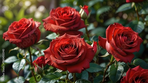 red wallpaper, Lush red roses blooming in a sunlit garden