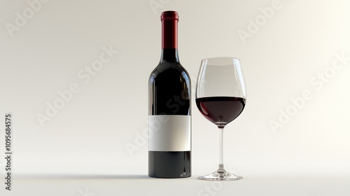 Red wine bottle and glass.