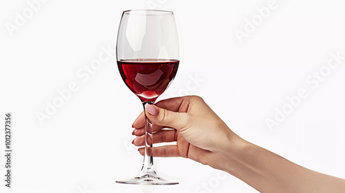 Red wine glass in hand isolated on white background with clipping path