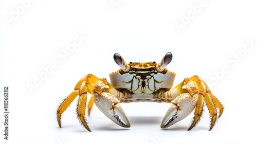 Reddish Orange Crab with Claws on White Background