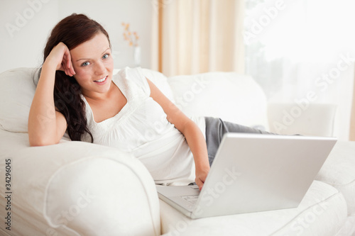 missy, casual attire, cute, hair, house, isolated, living, modern, room, single, one person, caucasian appearance, background, beautiful, beauty, colours, computer, couch, face, hand, happy, home, human, interior, laptop, lifestyle, model, 1, people, person, portrait, pretty, smile, smiling, sofa, white, wireless