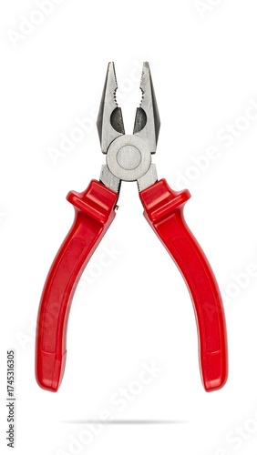 plier, tool, red, metal, handle, equipment, work, repair, construction, handyman, fixing, maintenance, bricolage, craft, electrical, mechanical, cutting, gripping, holding, stainless, steel, hardware, plumbing, automotive, industrial, home, utility, strong, hard-wearing, tough, grip, force, power, hand, used, object, isolated, white, background, closeup, image, instrument