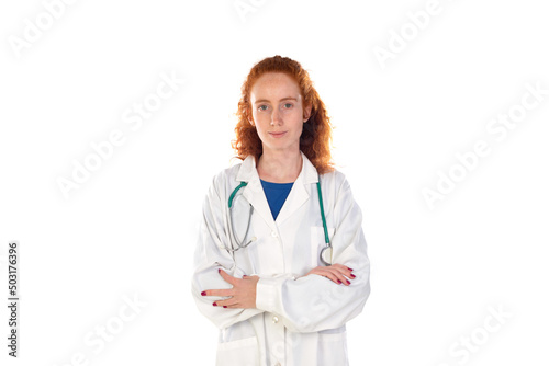 person, woman, doctor, professional, stethoscope, young, hospital, medicals, medicine, health, female, redhead, adult, girl, care, nurse, smile, happy, beautiful, looking, portrait, clinic, confident, indoor, cheerful, expression, red hair, positive, uniform, happiness, smiling, background, eye, gesture, health care, caucasian, arm, showing, specialist, face, isolated, hand, natural, finger, idea, laugh, trust, white, fashion