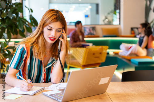 agency, business, businesswoman, call, casual attire, collaborative, colleague, communication, computer, corporate, economy, furniture, ginger, goggles, hat, hipster, indoor, job, laptop, lifestyle, meeting room, modern, notebook, office, business building, phone, portrait, professional, project, real, redhead, sitting, small business, stylish, success, talking, teamwork, technology, trend, woman, work, men at work, working, young