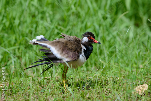 Red-wattled lapwing is an Asian lapwing or large plover, a wader in the family Charadriidae. They are ground birds that are incapable of perching.