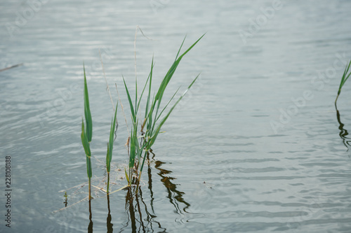 reeds grow on water, small plants