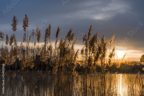 Reeds under the sunset in Beijing Chaoyang Park