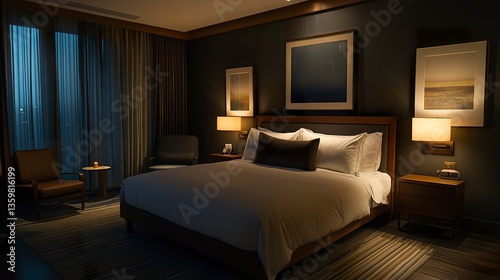 bedchamber, bed, room, hotel, interior, furniture, home, luxury, lamp, pillow, house, apartment, design, comfortable, window, decor, nobody, light, wall, indoor, contemporary, architecture, motel, pillow, bedding