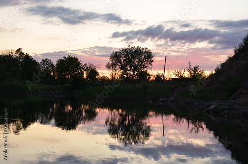 lake, water, sunset, sky, landscape, nature, blue, cloud, cloud, tree, forest, calm, beautiful, evening, summer, morning, panorama, beauty, tree, tranquil