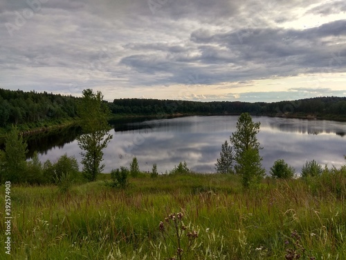 lake, water, landscape, sky, nature, blue, river, summer, cloud, sunset, cloud, forest, grass, mountain, tree, beautiful, duck pond, green, panorama, view, beauty, tree, evening, tranquil