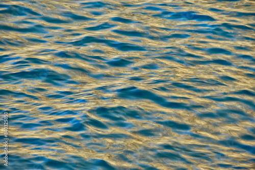 Reflective texture of blue and gold water waves on the water surface of the Cantabrian Sea