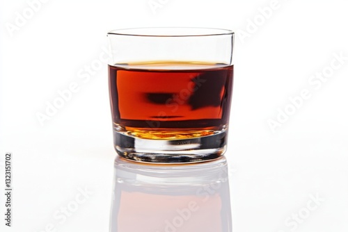 Refreshing apple juice served in a clear glass on a vibrant white background