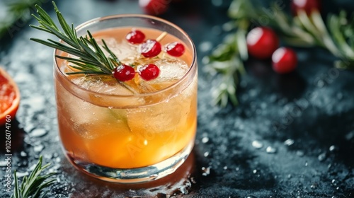 cocktail, drink, beverage, citrous, cranberry, ice cube, rosemary, garnish, glasses, refreshment, festive, celebration, party, bar, alcohol, nonalcoholic, homemade, orange, fresh, cool, chilled, delicious, tasty, vibrant, seasonal, ingredient, herb, aromatic, artful, creative, liquid, cold, thirst quenching, favor, juicy, appetising, decorative, stylish, culinary, epicure, elegant, sophisticated, trendy, atmospheric