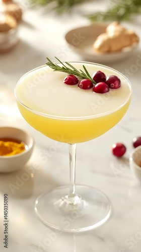 cocktail, citrous, cranberry, rosemary, garnish, refreshing, drink, beverage, alcohol, mixed, marble, table, glasses, elegant, festive, bright, yellow, fruit, fresh, herb, stylish, smooth, creamy, surface, stemware, bar, dining, sophisticated, appetising, vibrant, culinary, receipe, party, decor, aesthetic, ginger, bowl, background, holiday, celebration, chic, tasteful, juicy, blend
