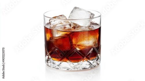 Refreshing dark cocktail with ice cubes in a crystal glass on a white background studio shot close up capturing a sophisticated and elegant mood