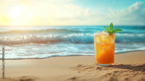 drink, cocktail, beach, sunset, ocean, sand, ice, summer, beverage, tropical, refreshing, relaxation, leisure, sunlight, wave, glasses, mint, favor, vacation, travel, shore, nature, horizon, tranquil, enjoyment, paradise, warm, lifestyle, closeup, fruit, sweet, cold, bright, scenery, afternoon, scene, heat, coast, serenity, clear, sparkling, beauty, sun, blue, liquid, refreshment