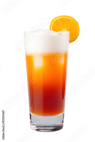 Refreshing glass of iced beverage with frothy foam and a slice of orange, perfect for summer enjoyment and gatherings.