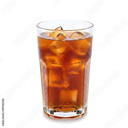 Refreshing Glass of Iced Tea with Ice Cubes, Isolated on White Background.