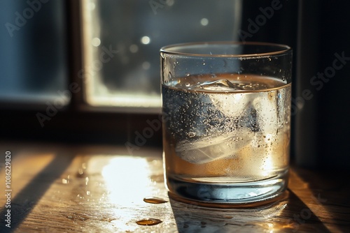 water, ice, glasses, still life, sunlight, lens flare, beverage, refreshment, home, interior, transparency, condensation, drop, lifestyle, natural light, hydratation, summer, relaxation, elegance, drink, cooling, dining, table, window, morning light, cosy, serenity, nature, warmth, artistic, decor, minimalism, refreshing, calm, zen, splash, fluid, time, moment, photographic, colours, aesthetic, inspiration, stillness