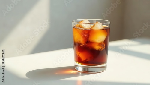 Refreshing Iced Coffee in a Glass on a Bright Surface with Sunlight