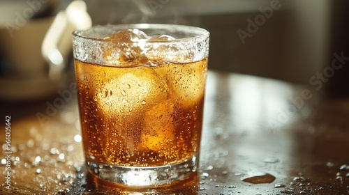 drink, ice, glasses, beverage, cold, refreshment, water, soda, sweet, liquid, brown, transparent, table, condensation, cube, fizzy, sparkling, cool, quenching, thirst, summer, glassware, still, life, texture, light, shadow, blur, background, closeup, macro, food, photo, citrous, tea, hot drink, alcoholic, nonalcoholic, cafes
