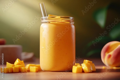 mango, smoothie, jar, straw, tropical, summer, fruit, drink, healthy, refreshment, sunlight, kitchen, healthy eating, fresh, organic, diet, nourishment, chill, bliss, comfort, juicy, dessert, snack, blend, sweetness, colourful, bright, favor, healthy lifestyle, vitamin, fresh produce, hydratation, breakfast, cafes, brunch, indulgence, homemade, indulgent, ice, light, coconut, generative, ai