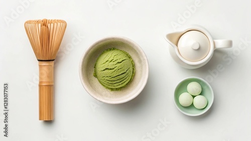 Refreshing matcha soft serve ice cream in a clear glass cup.