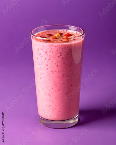 Refreshing Pink Smoothie in Glass on Vibrant Purple Background Healthy Summer Drink Concept.