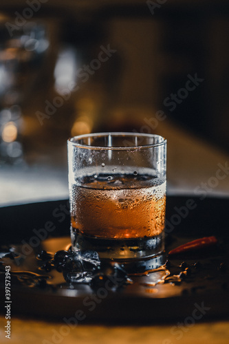 alcohol, nonalcoholic, drink, liquid, cocktail, whiskey, rum, cola, ice, dilute, cold, cool, refreshing, useful, drop, spray, puddle, water, evaporation, condensate, mix, bar, light, throw, cube, frappe, rest, relax, vacation, barkeeper, shake