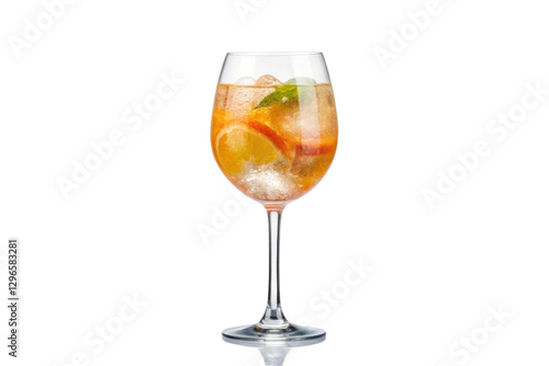 Refreshing summer cocktail with citrus fruits and ice served in a tall glass for a cheerful gathering, cut out