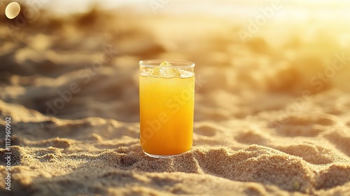 Refreshing Summer Drink on Sandy Beach at Sunset