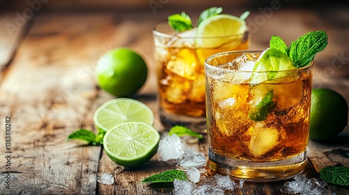 cocktail, drink, lime, mint, iced, glasses, brown, sweet, refreshing, summer, tropical, rum, tea, delicious, bar, party, fresh, healthy, summer, alcoholic beverage