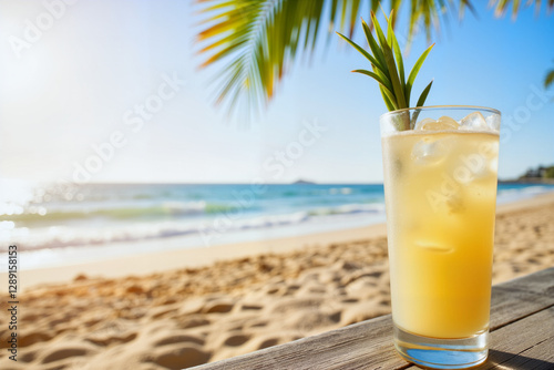 Refreshing tropical drink on sandy beach, summer relaxation