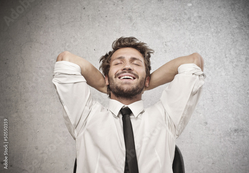 armchair, background, beard, boy, business, businessman, caucasian, chair, earn, fun, guy, photogenic, happy, indoor, job, joy, male, man, office, refreshment, relax, to rest, rest, satisfaction, smile, success, wall, white, succeed, work, men at work